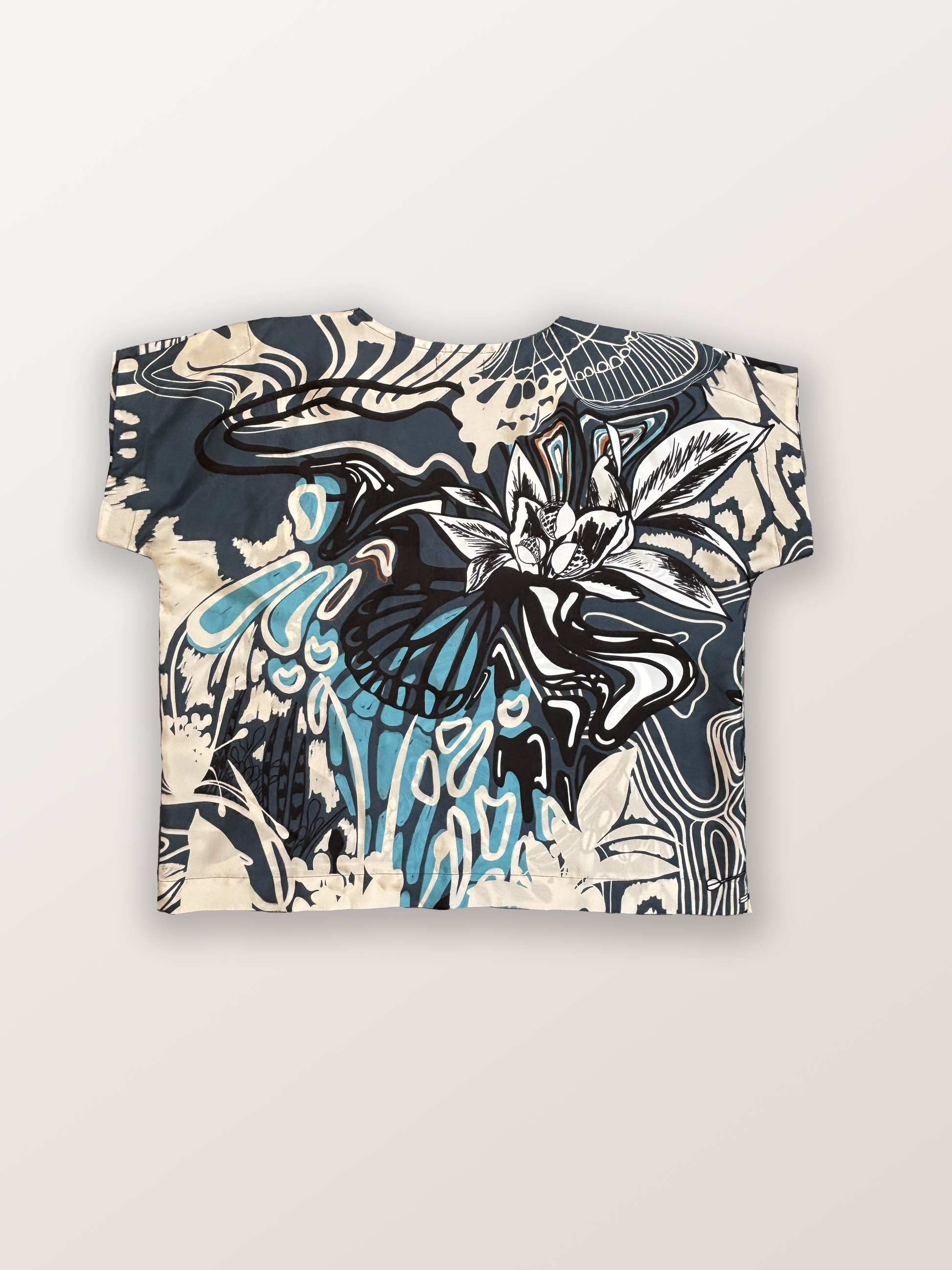 TOP AMPLIO V SEDA NATURAL MARIPOSA BLUE